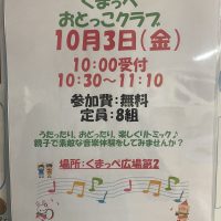 広場からのお知らせ 2025年09月30日 10月より午前も午後も予約なしでご利用いただけます! 0123さいくまっぺ広場のみ、午前も午後も予約なしとなります。なお、イベントやサークル支援日等は広場が利用できない場合もあ …